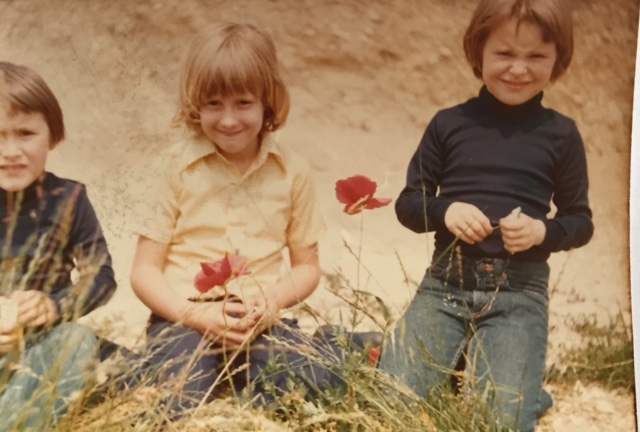 | Marie-Juliette and two little Simiele girls with poppies. I can't remember all the names. |